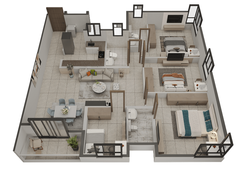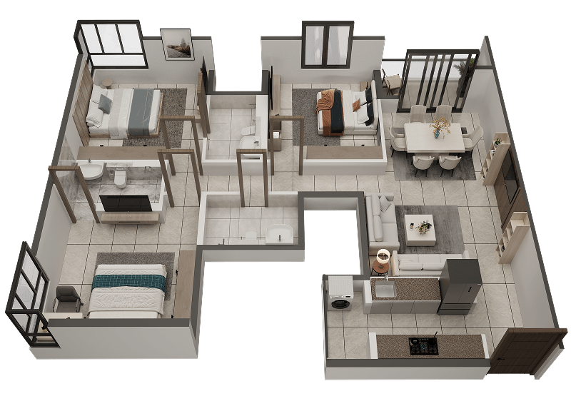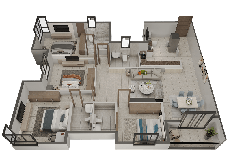- 03 3BHK+S+3T (1366 sq ft BUA)