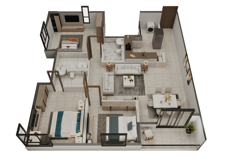 - 02 3BHK+3T (1218 sq ft BUA)